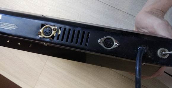 Íà çàäíåé ïàíåëè óñòàíîâëåíû ðàçúåìû ëèíåéíîãî âûõîäà è ðàçúåì, êîòîðûé èñïîëüçîâàëñÿ â êà÷åñòâå çàïèñè äàííûõ íà ìàãíèòíóþ ëåíòó, äàëëå ýòè äàííûå ìîæíî çàãðóæàòü â àïïàðàò êàê êàðòðèäæ â èãðîâóþ ïðèñòàâêó.  ðàéîíå ðàçúåìà âûõîäà åñòü 6 ðåãóëÿòîðîâ ãðîìêîñòè èíñòðóìåíòîâ (âíóòðåííèé ìèêøåð).